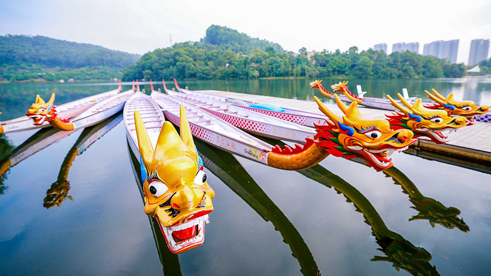 龍舟競渡,又稱扒龍舟、賽龍舟、扒龍船、劃龍船、龍船賽會等,是中國歷史上一種具有濃郁的傳統(tǒng)民俗文化色彩的群眾性娛樂活動,同時也是一種有利于增強人民體質,培養(yǎng)勇往直前、堅毅果敢精神的體育運動。相傳起源于春秋戰(zhàn)國時期,楚國人因舍不得賢臣屈原投江死去,許多人劃船追趕拯救。他們爭先恐后,追至洞庭湖時卻不見其蹤跡。之后每年五月五日人們劃龍舟以紀念之。并借劃龍舟驅散江中之魚,以免魚吃掉屈原的身體。競渡之習,盛行于吳國、越國、楚國吳越水鄉(xiāng)一帶,目的是通過祭祀圖騰——龍,以祈求避免常見的水旱之災。